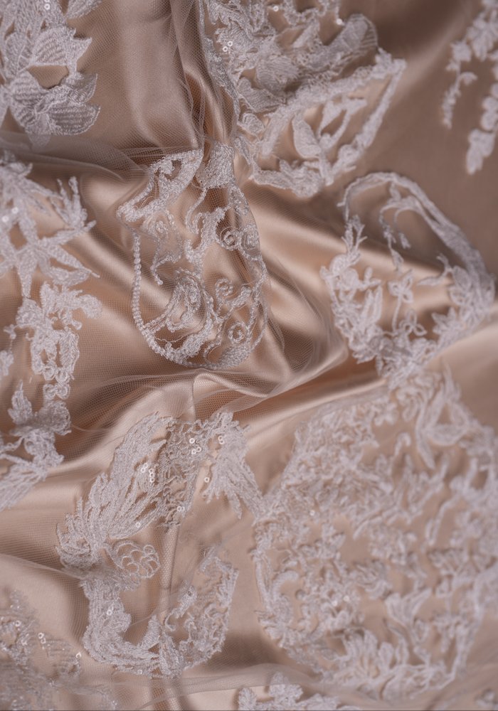Add the perfect touch to your creations with our luxurious lace fabric, adorned with vibrant sequin floral motifs. Measuring generously in width, this opulent material blends striking modern beauty with timeless sophistication—ideal for crafting breathtaking evening gowns and chic cocktail dresses.