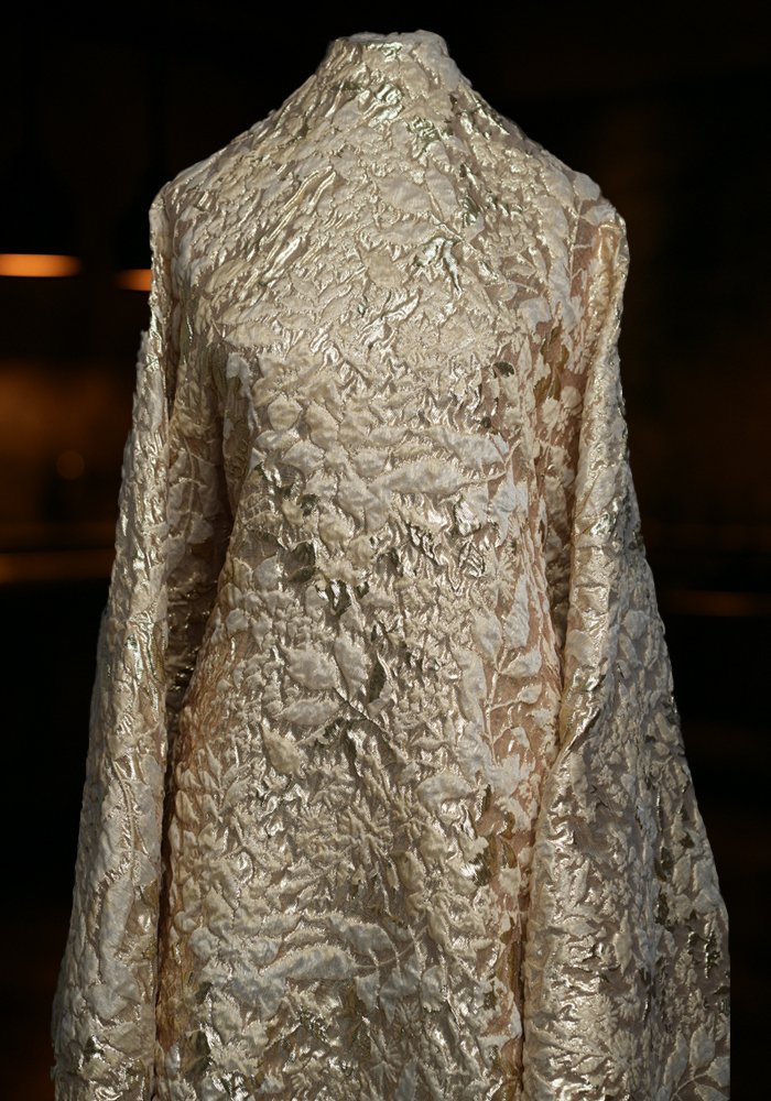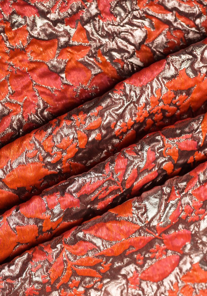 A refined jacquard fabric featuring gracefully woven branch and leaf motifs. The textured weave creates a sophisticated depth, while the natural-inspired pattern offers a timeless elegance. Ideal for tailored eveningwear, formal jackets, or statement pieces that blend structure with organic beauty.